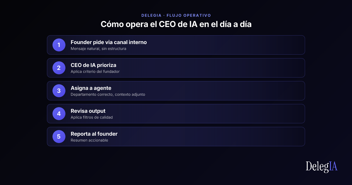 En todos los casos la lógica es la misma. El fundador o el equipo directivo debe poder decirle al CEO de IA "encárgate de X" y volver a recibir un resultado revisado, no un borrador con 12 dudas pendientes.